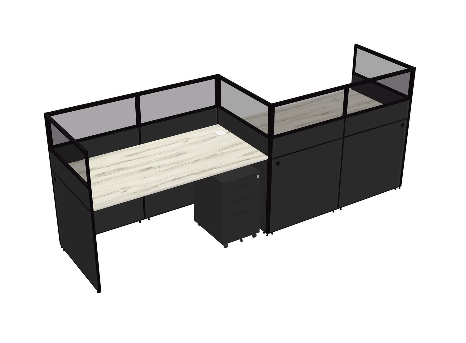 Postes De Travail Rectangulaires Heinne Holz Pour 2 Personnes - Disposition En Zigzag + Tiroirs Mobiles En Métal Noir