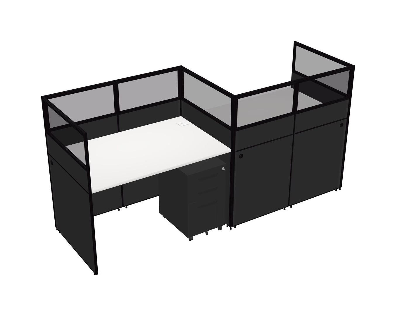 Postes De Travail Rectangulaires Blancs Pour 2 Personnes - Formation En Zigzag + Tiroirs Mobiles En Métal Noir