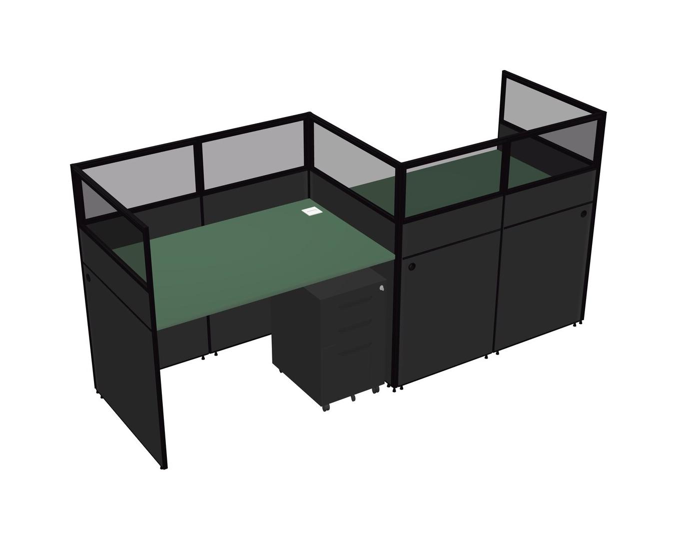 Postes De Travail Rectangulaires Verts Pour 2 Personnes - Formation En Zigzag + Tiroirs Mobiles En Métal Noir