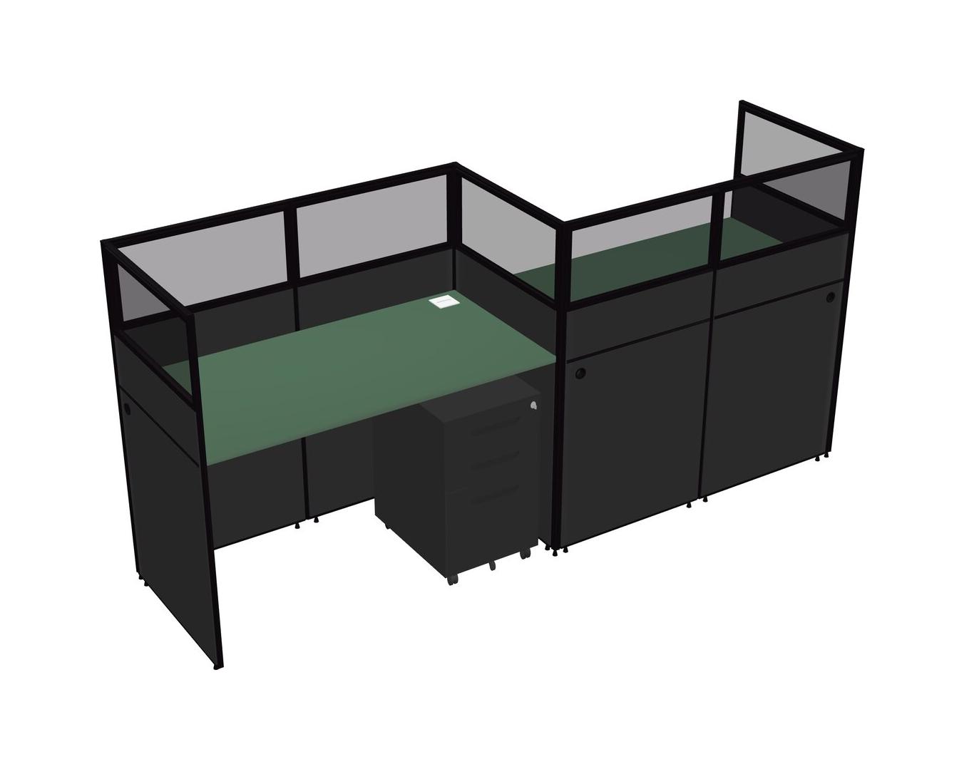 Postes De Travail Rectangulaires Verts Pour 2 Personnes - Formation En Zigzag + Tiroirs Mobiles En Métal Noir