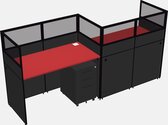 Postes De Travail Rectangulaires Prism Red Pour 2 Personnes - Formation En Zigzag + Tiroirs Mobiles En Métal Noir