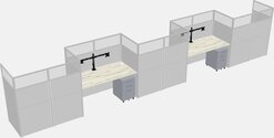 Postes De Travail Rectangulaires Heinne Holz Pour 5 Personnes - Disposition En Zigzag + Tiroirs Mobiles En Métal Gris