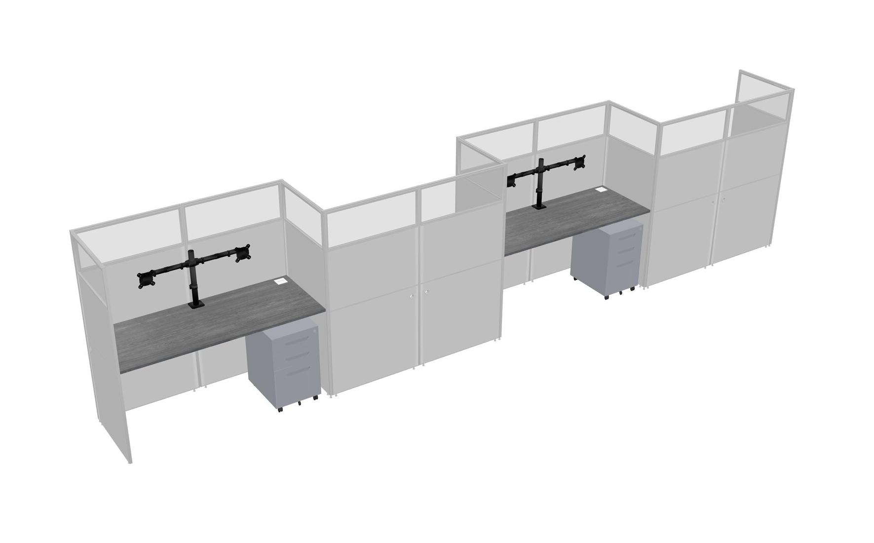 Postes De Travail Rectangulaires Gris Pour 4 Personnes - Formation En Zigzag + Tiroirs Mobiles En Métal Gris