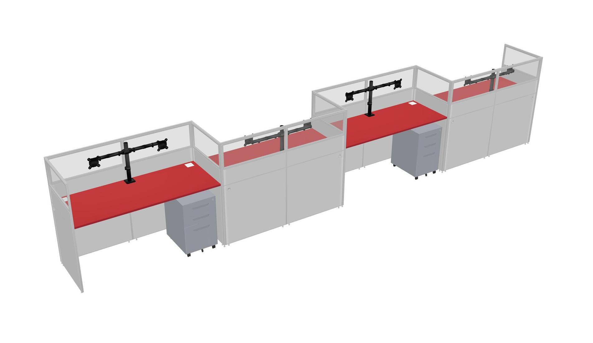 Postes De Travail Rectangulaires Prism Red Pour 4 Personnes - Formation En Zigzag + Tiroirs Mobiles En Métal Gris