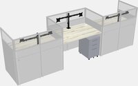 Postes De Travail Rectangulaires Heinne Holz Pour 3 Personnes - Disposition En Zigzag + Tiroirs Mobiles En Métal Gris