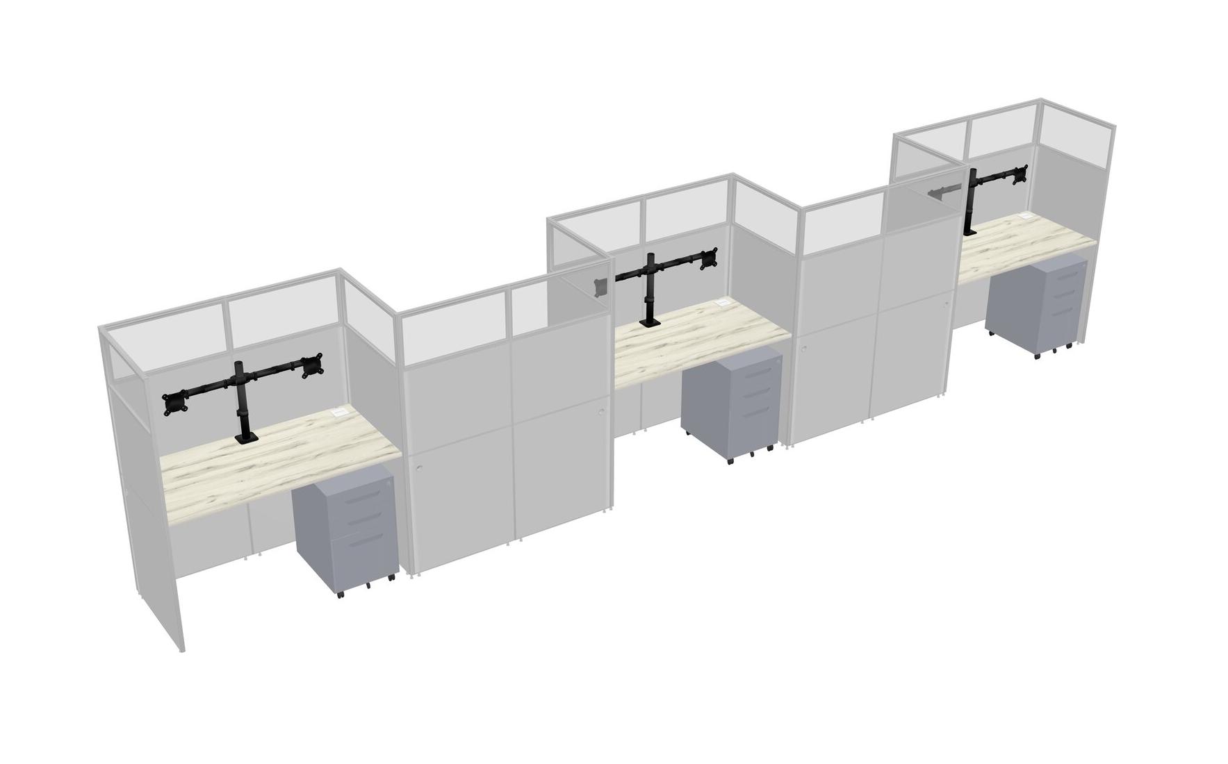 Postes De Travail Rectangulaires Heinne Holz Pour 5 Personnes - Disposition En Zigzag + Tiroirs Mobiles En Métal Gris