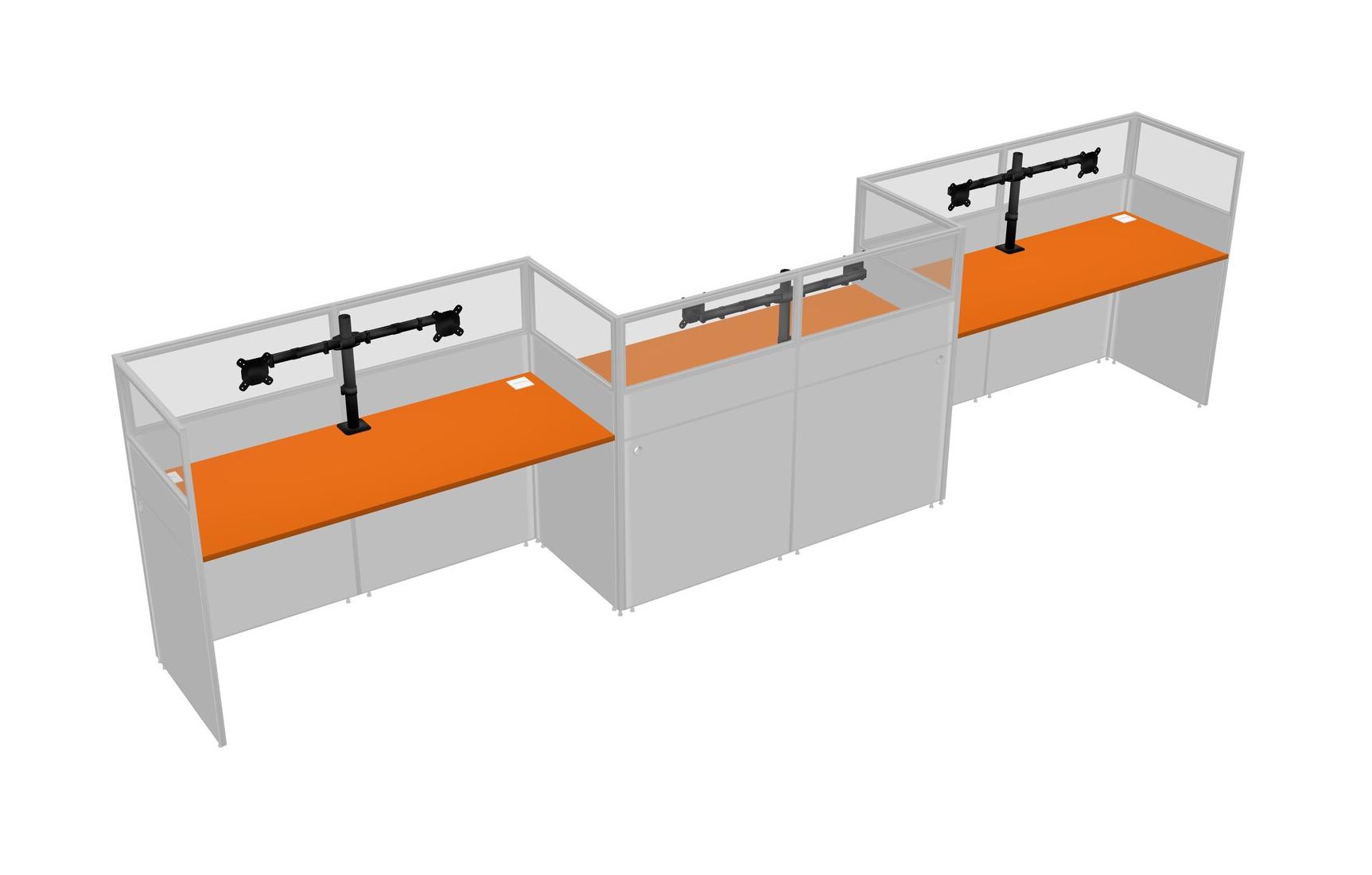 Postes De Travail Rectangulaires Orange Pour 3 Personnes - Formation En Zigzag