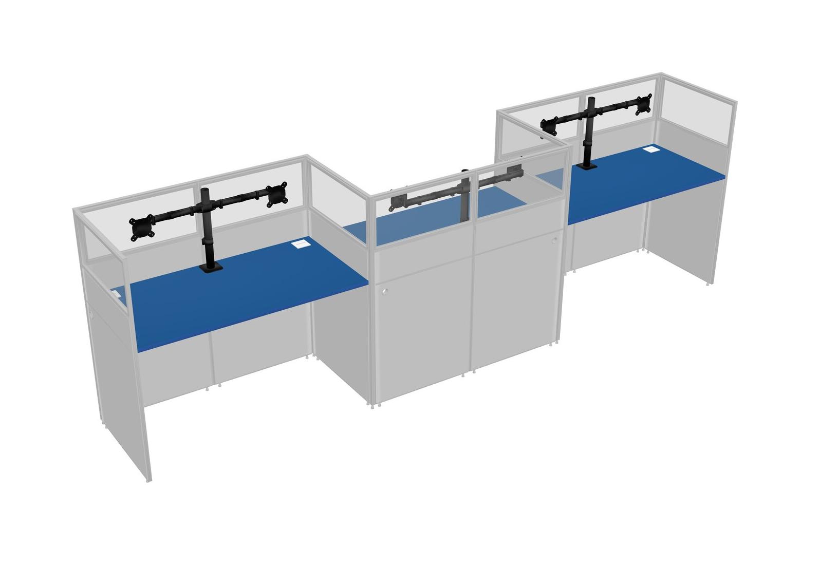 Postes De Travail Rectangulaires Prism Blue Pour 3 Personnes - Formation En Zigzag