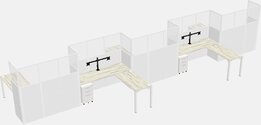 Postes De Travail En L Heinne Holz Pour 5 Personnes - Formation En Zigzag + Tiroirs Mobiles En Métal Blanc + Retour De Panneau