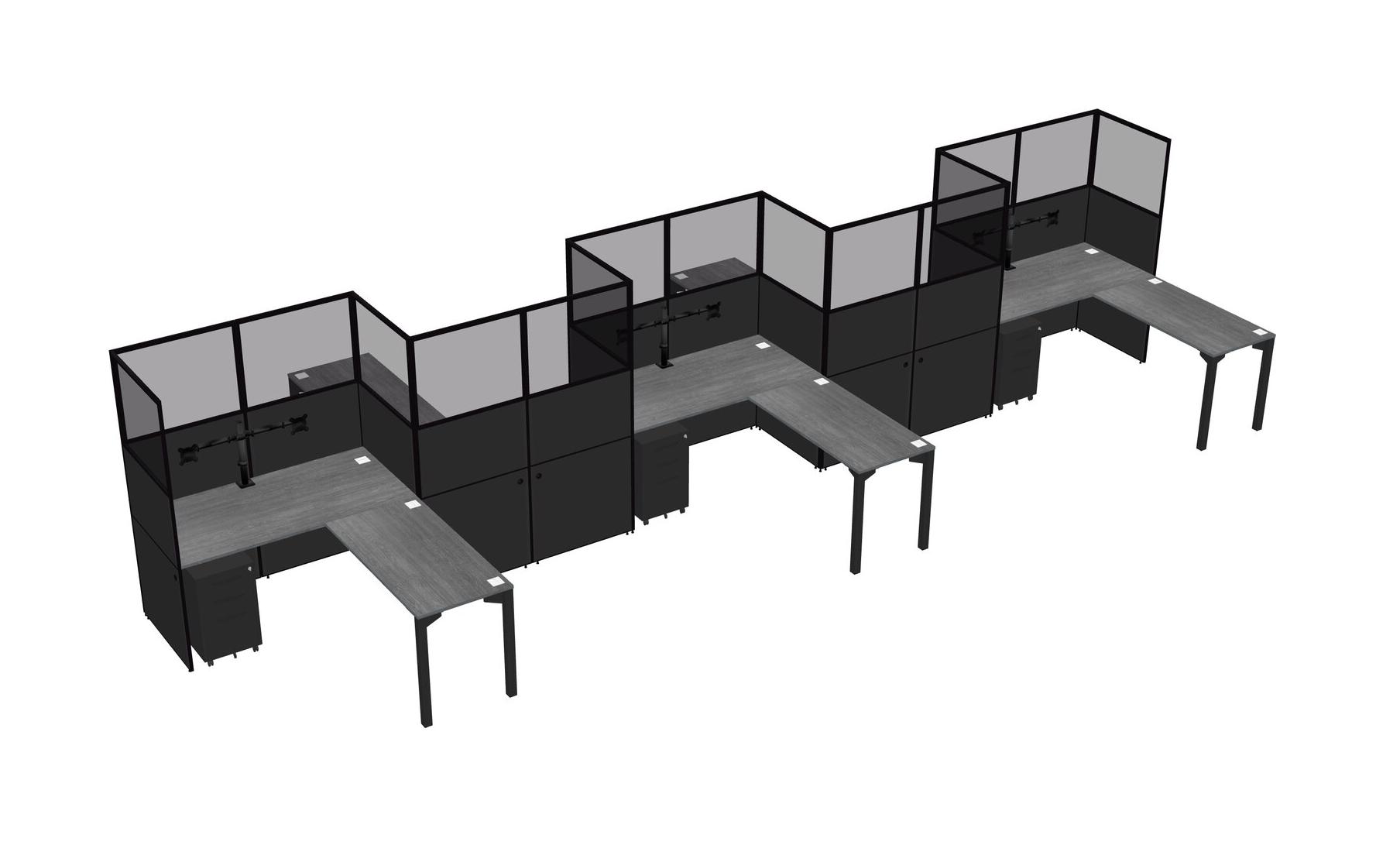 Postes De Travail En L Gris Pour 5 Personnes - Formation En Zigzag + Tiroirs Mobiles En Métal Noir + Retour De Panneau