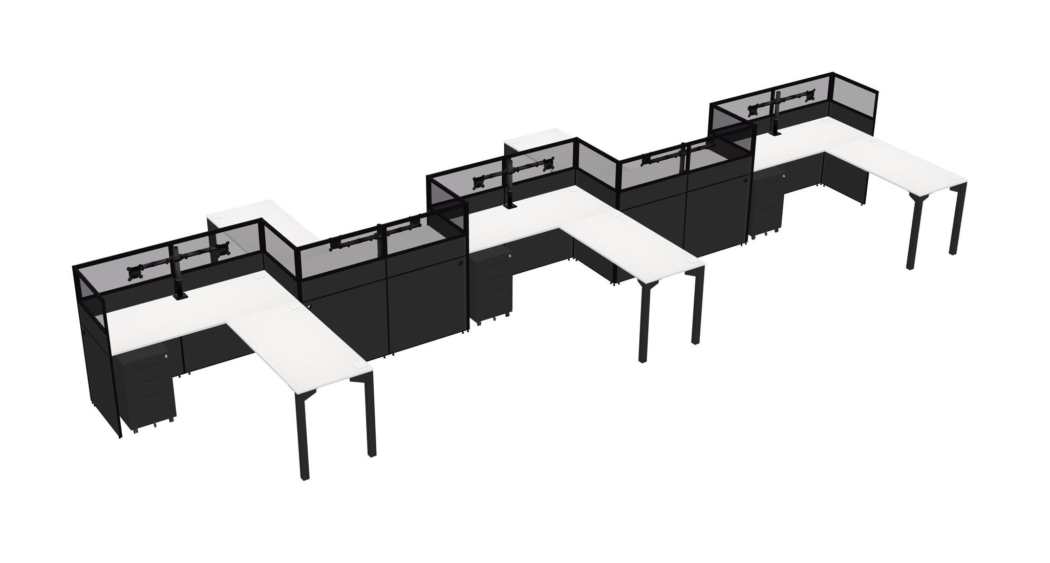Postes De Travail Blancs En L Pour 5 Personnes - Formation En Zigzag + Tiroirs Mobiles En Métal Noir + Retour De Panneau