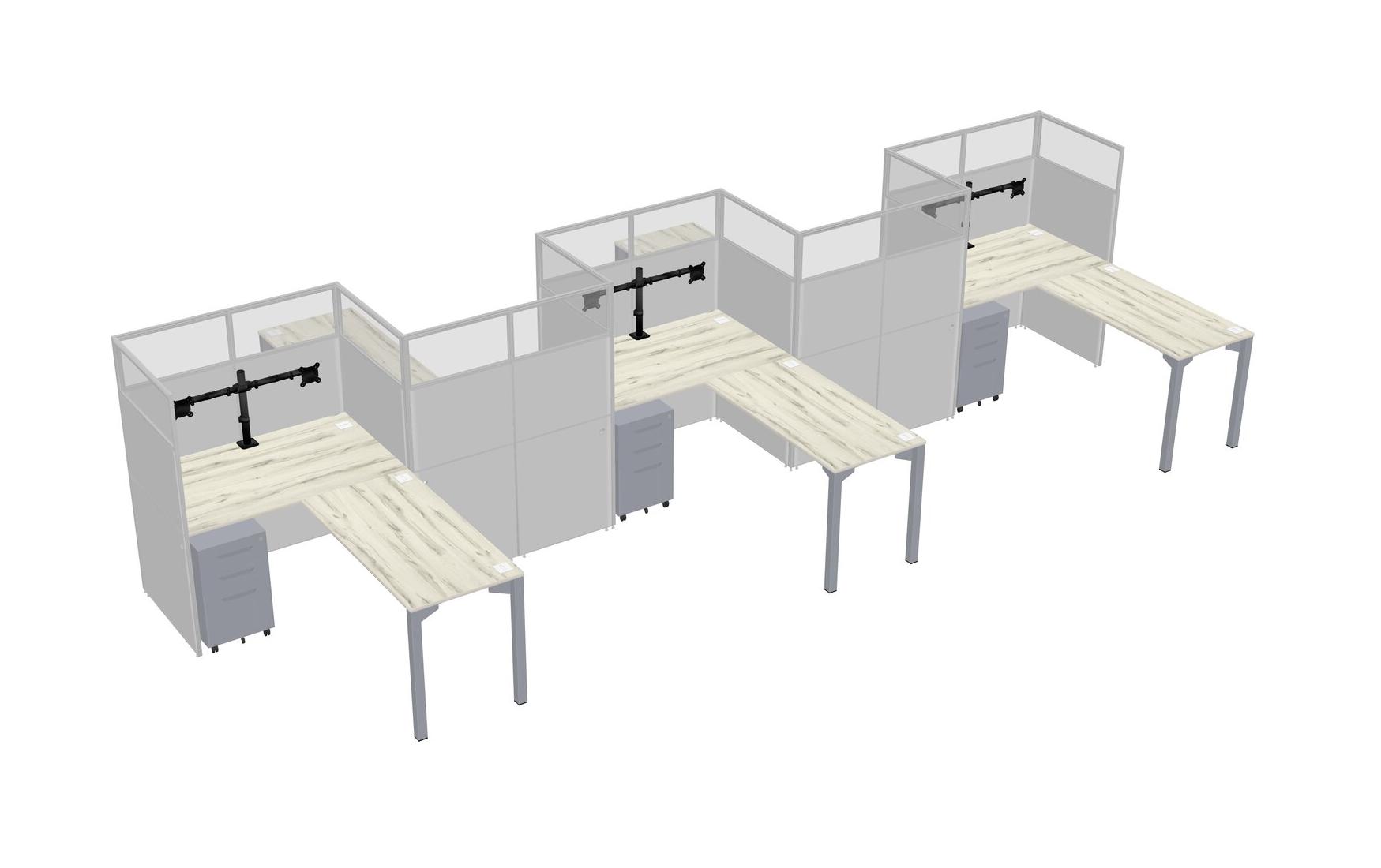 Postes De Travail En L Heinne Holz Pour 5 Personnes - Formation En Zigzag + Tiroirs Mobiles En Métal Gris + Retour De Panneau