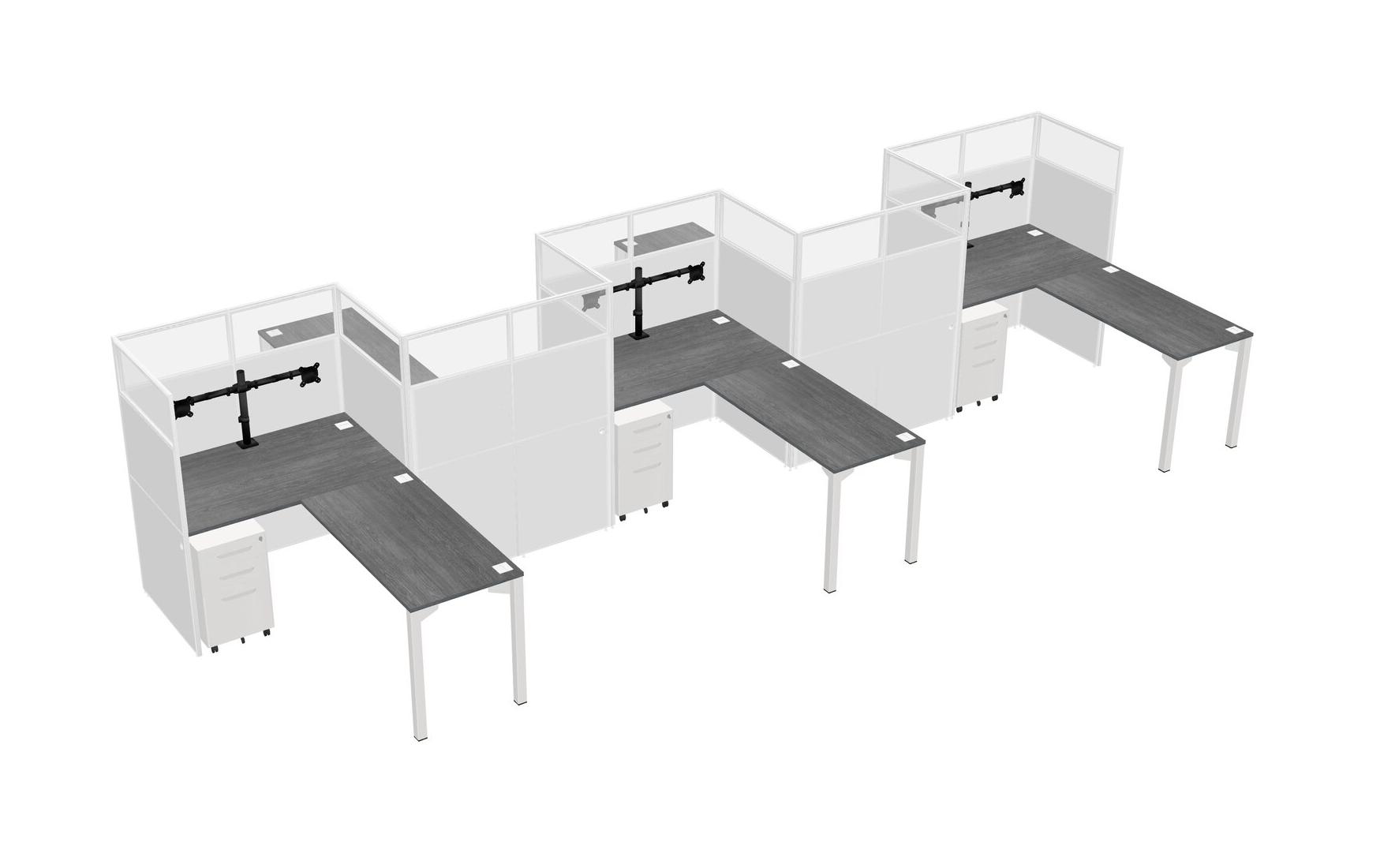Postes De Travail En L Gris Pour 5 Personnes - Formation En Zigzag + Tiroirs Mobiles En Métal Blanc + Retour De Panneau