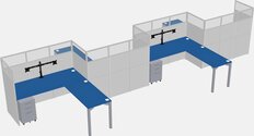 Postes De Travail En L Prism Blue Pour 4 Personnes - Formation En Zigzag + Tiroirs Mobiles En Métal Gris + Retour De Panneau