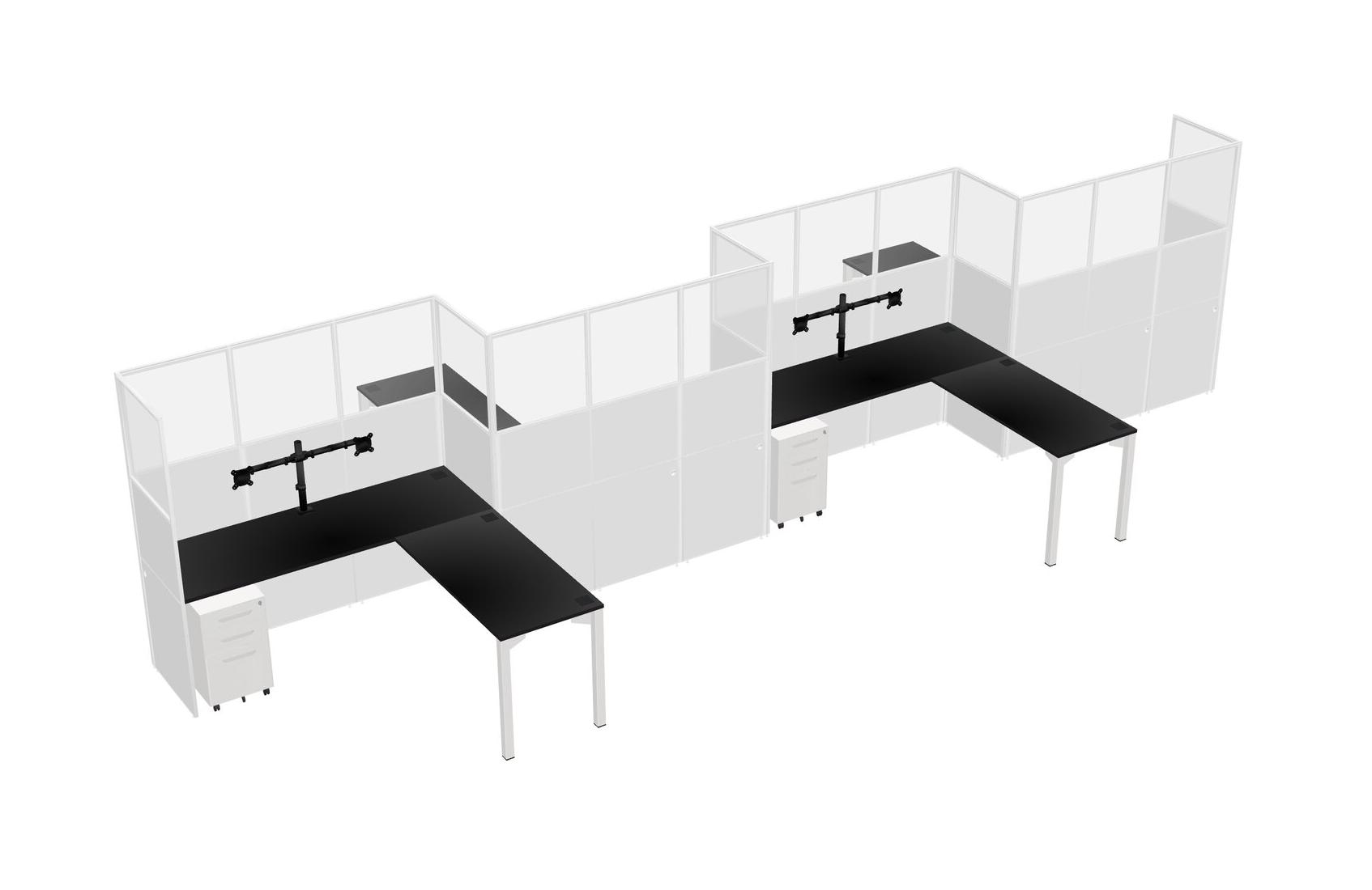 Postes De Travail En L Noirs Pour 4 Personnes - Formation En Zigzag + Tiroirs Mobiles En Métal Blanc + Retour De Panneau