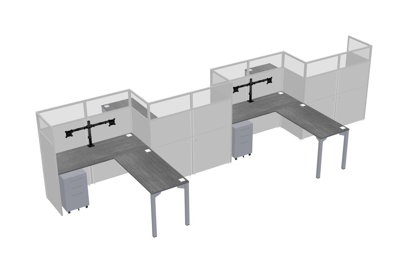 Postes De Travail En L Gris Pour 4 Personnes - Formation En Zigzag + Tiroirs Mobiles En Métal Gris + Retour De Panneau