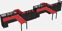 Postes De Travail En L Prism Red Pour 4 Personnes - Formation En Zigzag + Tiroirs Mobiles En Métal Noir + Retour De Panneau