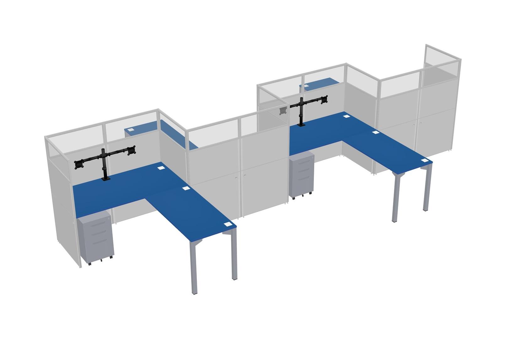 Postes De Travail En L Prism Blue Pour 4 Personnes - Formation En Zigzag + Tiroirs Mobiles En Métal Gris + Retour De Panneau