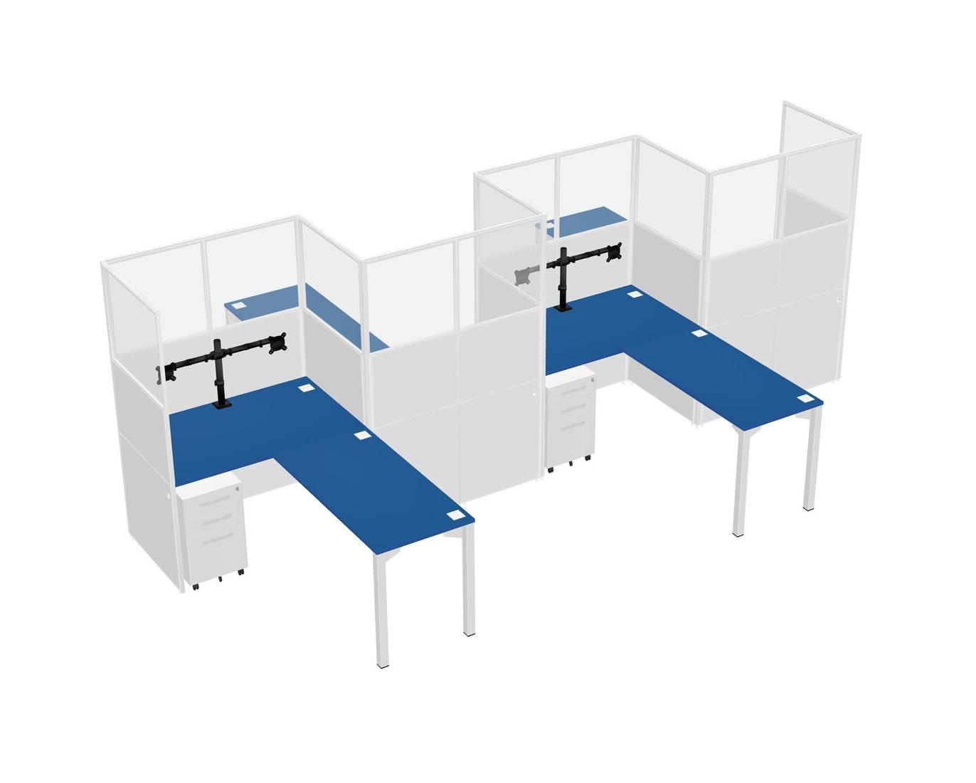 Postes De Travail En L Prism Blue Pour 4 Personnes - Formation En Zigzag + Tiroirs Mobiles En Métal Blanc + Retour De Panneau