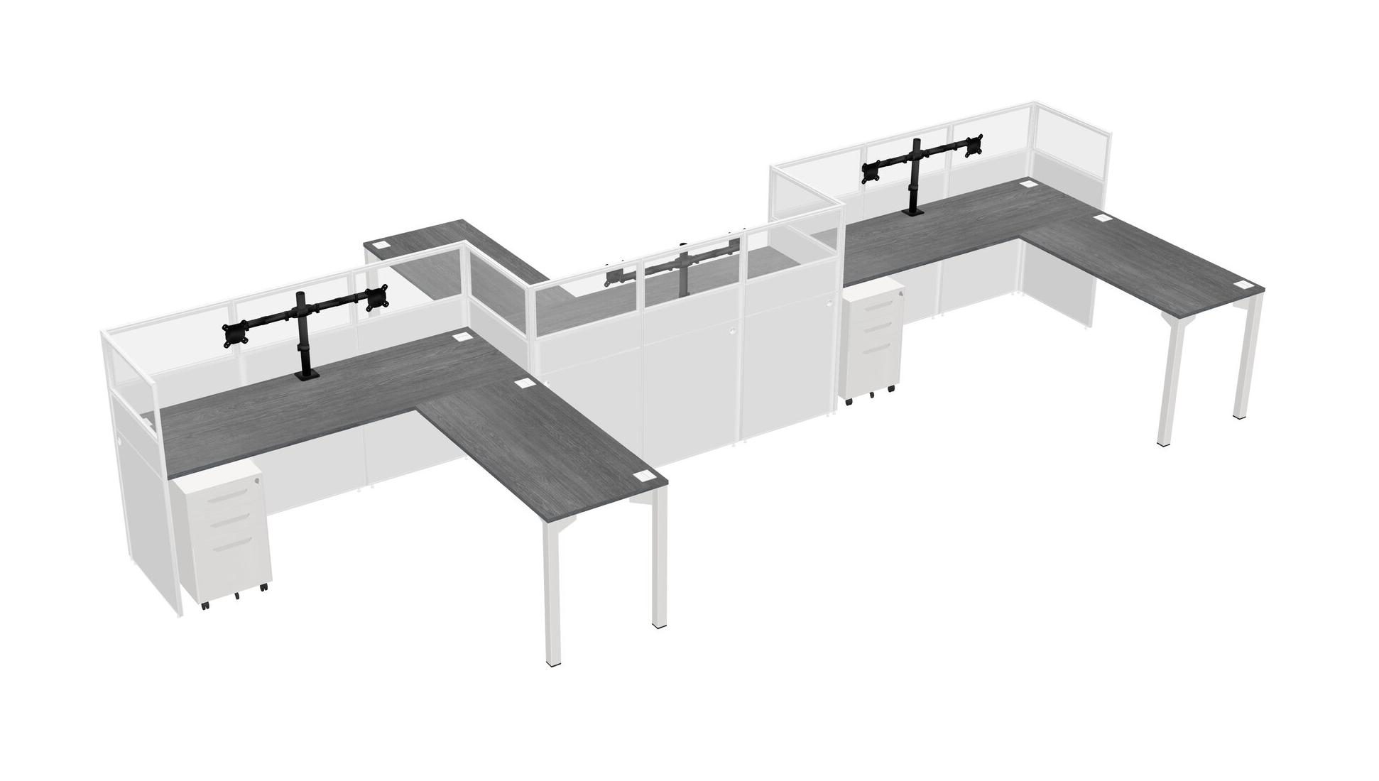 Postes De Travail En L Gris Pour 3 Personnes - Formation En Zigzag + Tiroirs Mobiles En Métal Blanc + Retour De Panneau