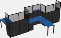 Postes De Travail En L Prism Blue Pour 3 Personnes - Formation En Zigzag + Tiroirs Mobiles En Métal Noir + Retour De Panneau