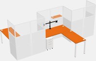 Postes De Travail En L Orange Pour 3 Personnes - Formation En Zigzag + Tiroirs Mobiles En Métal Blanc + Retour De Panneau