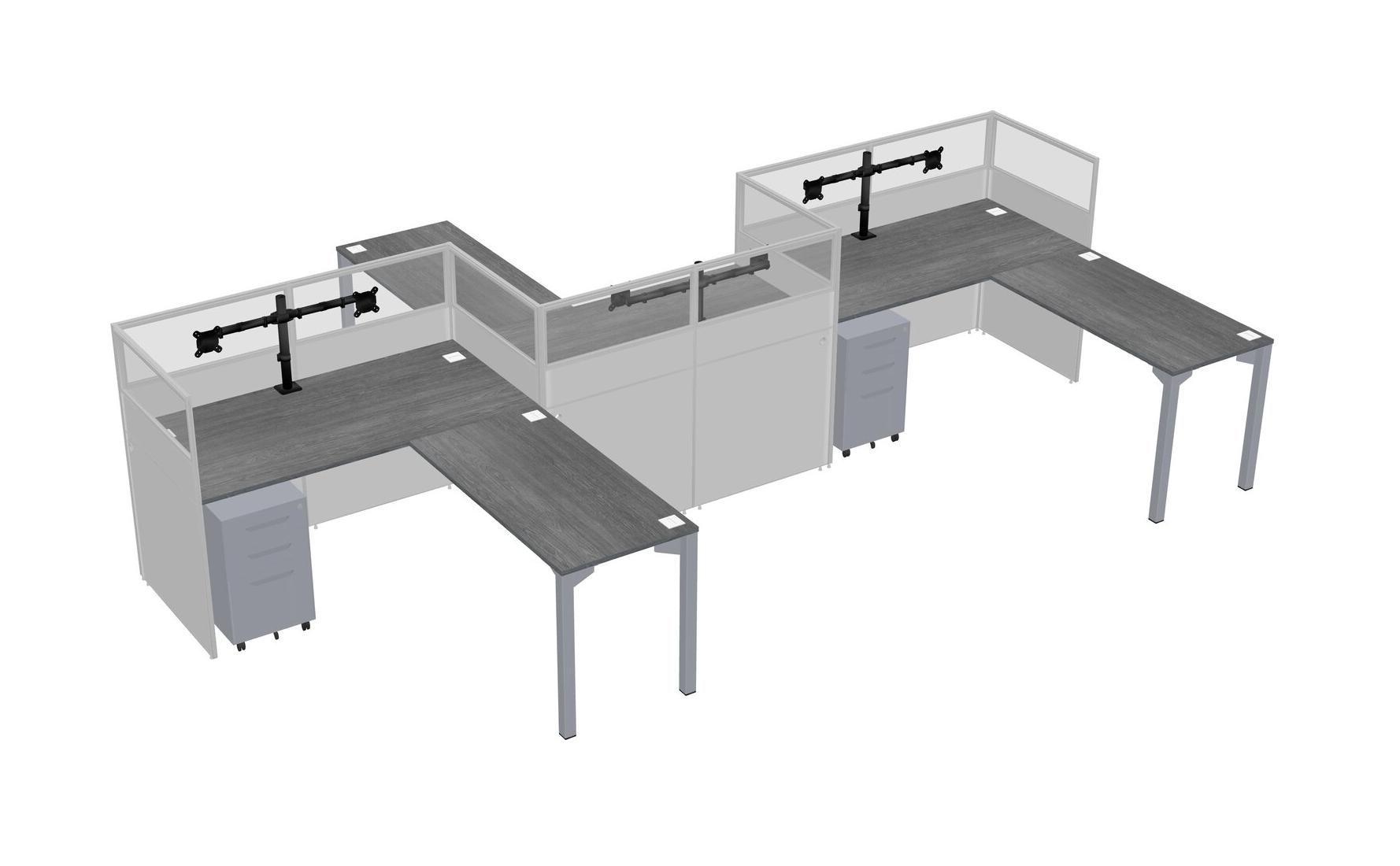 Postes De Travail En L Gris Pour 3 Personnes - Formation En Zigzag + Tiroirs Mobiles En Métal Gris + Retour De Panneau