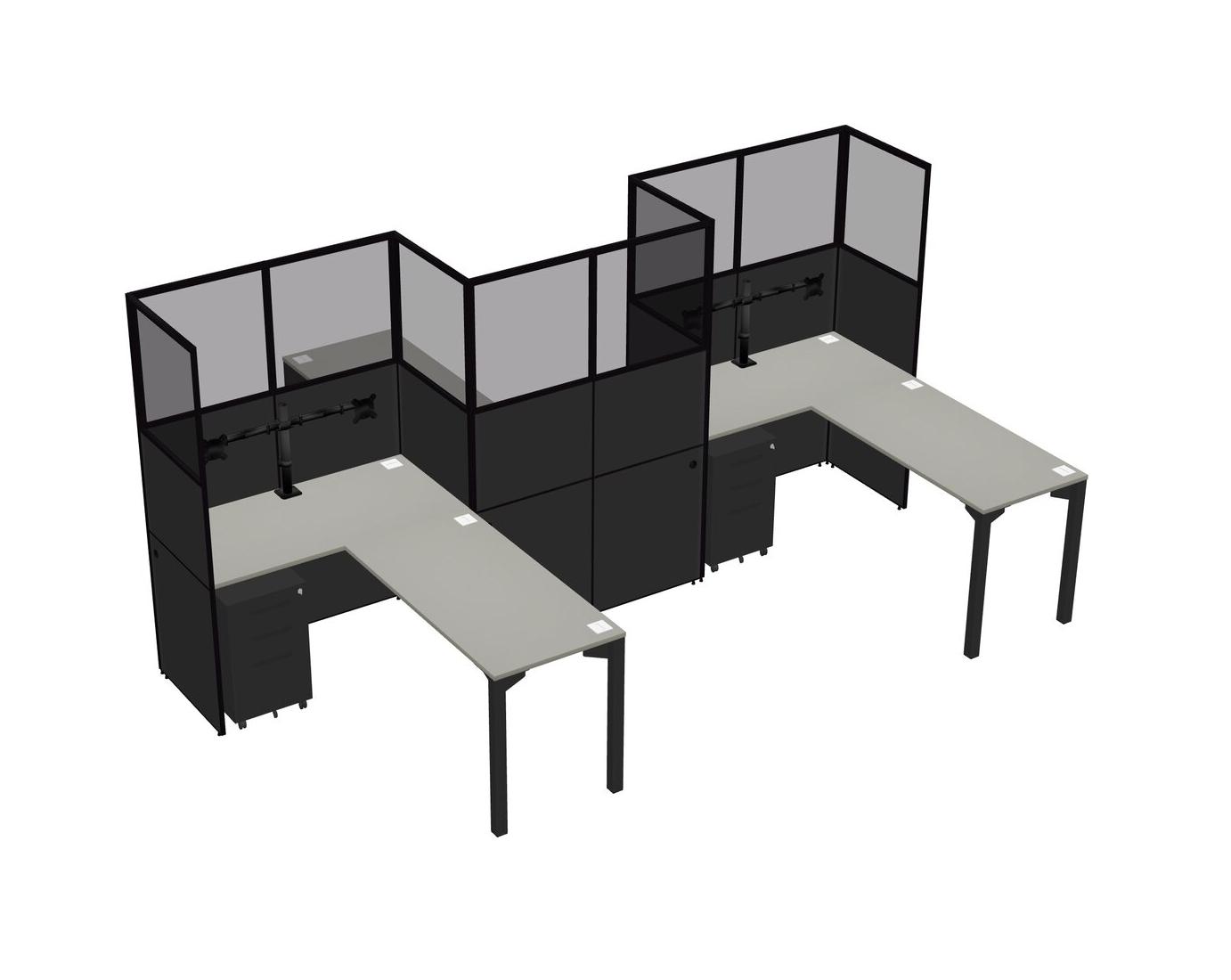Postes De Travail En L Grey Shadows Pour 3 Personnes - Formation En Zigzag + Tiroirs Mobiles En Métal Noir + Retour De Panneau