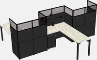 Postes De Travail En L Heinne Holz Pour 3 Personnes - Formation En Zigzag + Tiroirs Mobiles En Métal Noir + Retour De Panneau