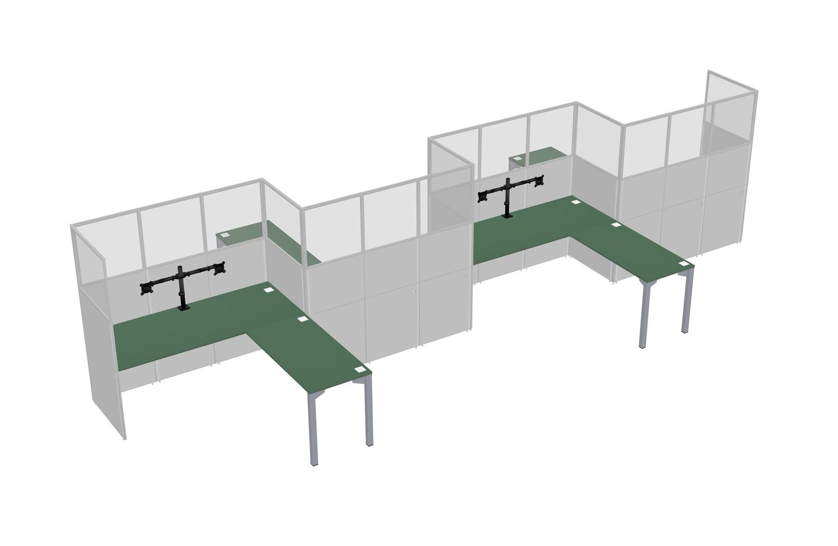 Postes De Travail En L Verts Pour 4 Personnes - Formation En Zigzag + Retour De Panneau