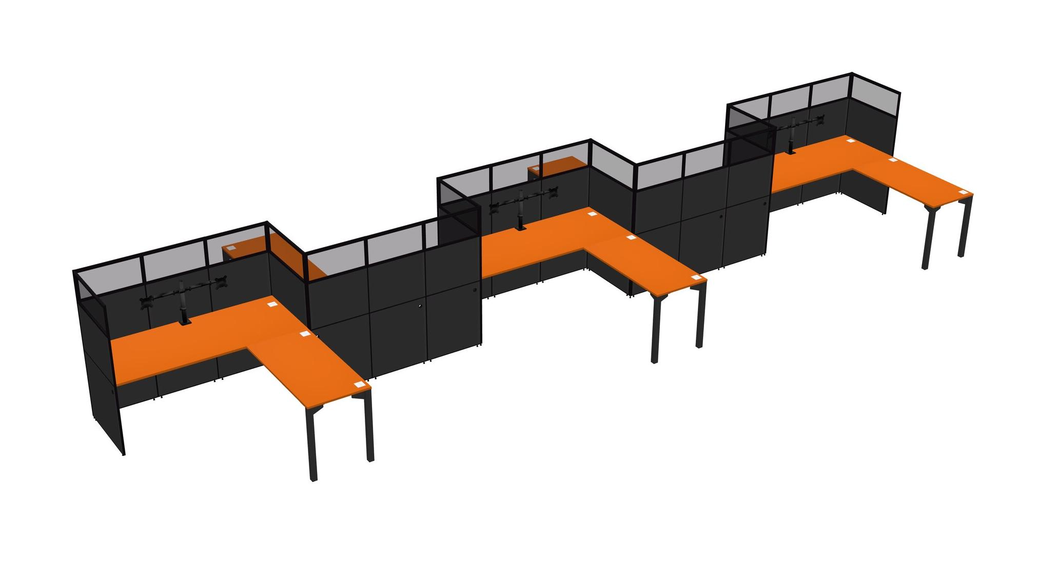 Postes De Travail En L Orange Pour 5 Personnes - Formation En Zigzag + Retour De Panneau