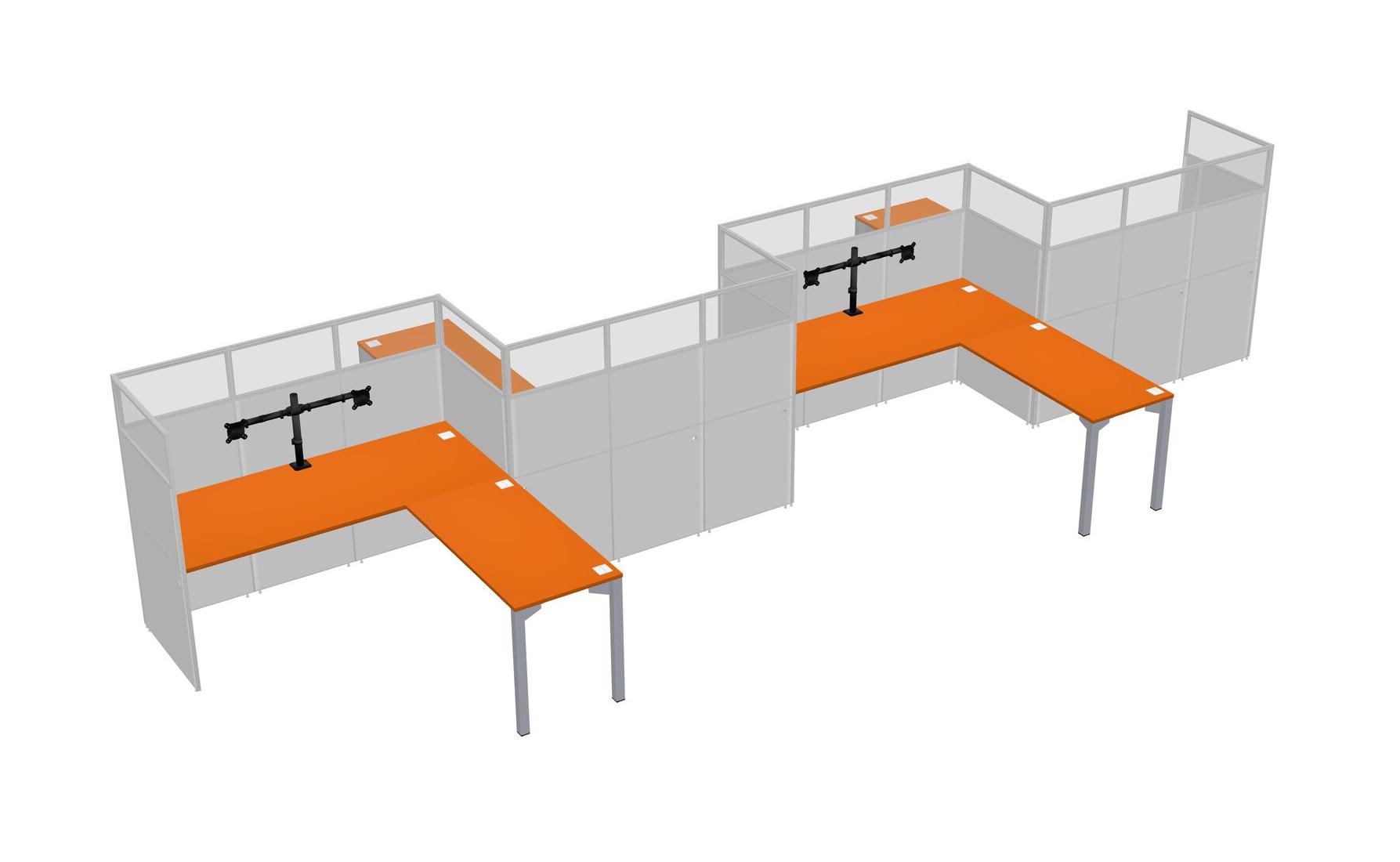 Postes De Travail En L Orange Pour 4 Personnes - Formation En Zigzag + Retour De Panneau