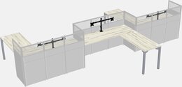 Postes De Travail En L Heinne Holz Pour 3 Personnes - Formation En Zigzag + Retour De Panneau