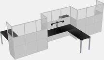 Postes De Travail En L Noirs Pour 3 Personnes - Formation En Zigzag + Retour De Panneau