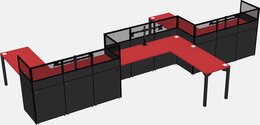 Postes De Travail En L Prism Red Pour 3 Personnes - Formation En Zigzag + Retour De Panneau
