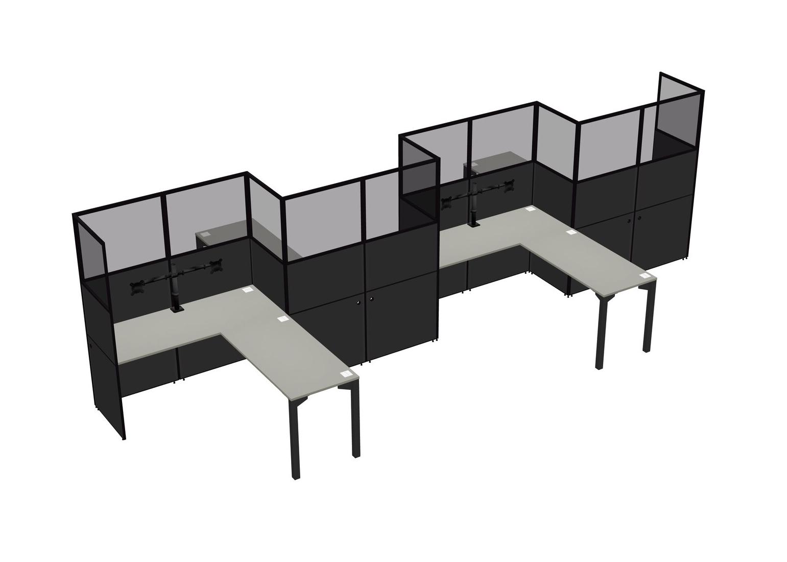 Postes De Travail En L Grey Shadows Pour 4 Personnes - Formation En Zigzag + Retour De Panneau
