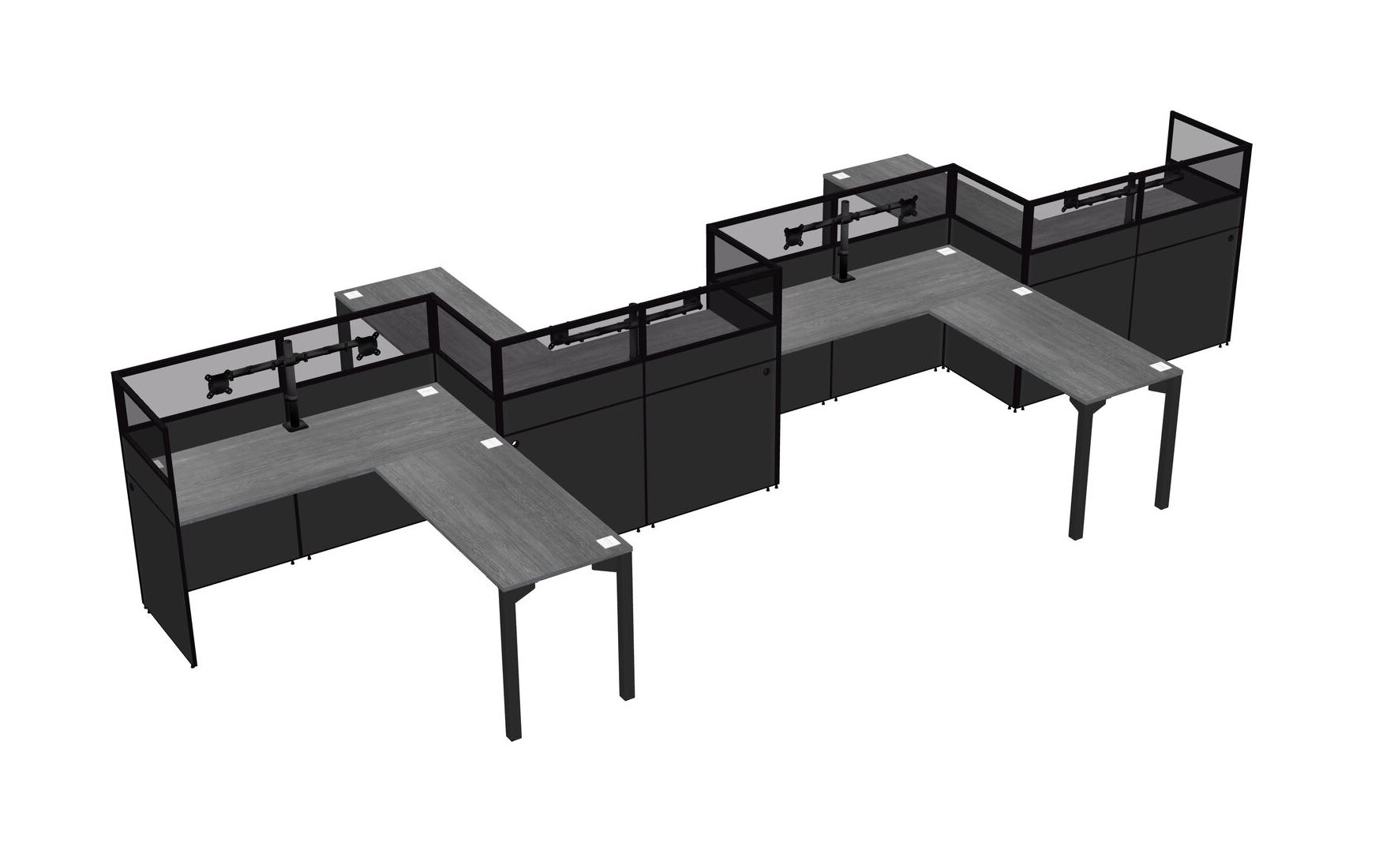 Postes De Travail En L Gris Pour 4 Personnes - Formation En Zigzag + Retour De Panneau
