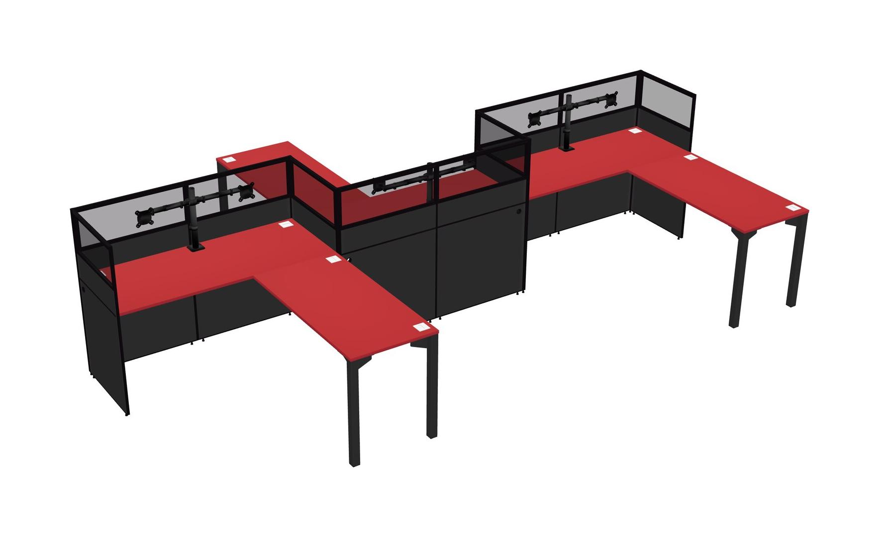Postes De Travail En L Prism Red Pour 3 Personnes - Formation En Zigzag + Retour De Panneau