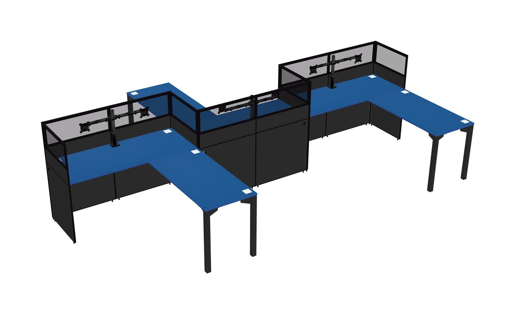 Postes De Travail En L Prism Blue Pour 3 Personnes - Formation En Zigzag + Retour De Panneau