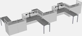 Postes De Travail En L Gris Pour 5 Personnes - Formation En Zigzag + Retour De Panneau