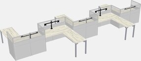 Postes De Travail En L Heinne Holz Pour 5 Personnes - Formation En Zigzag + Retour De Panneau