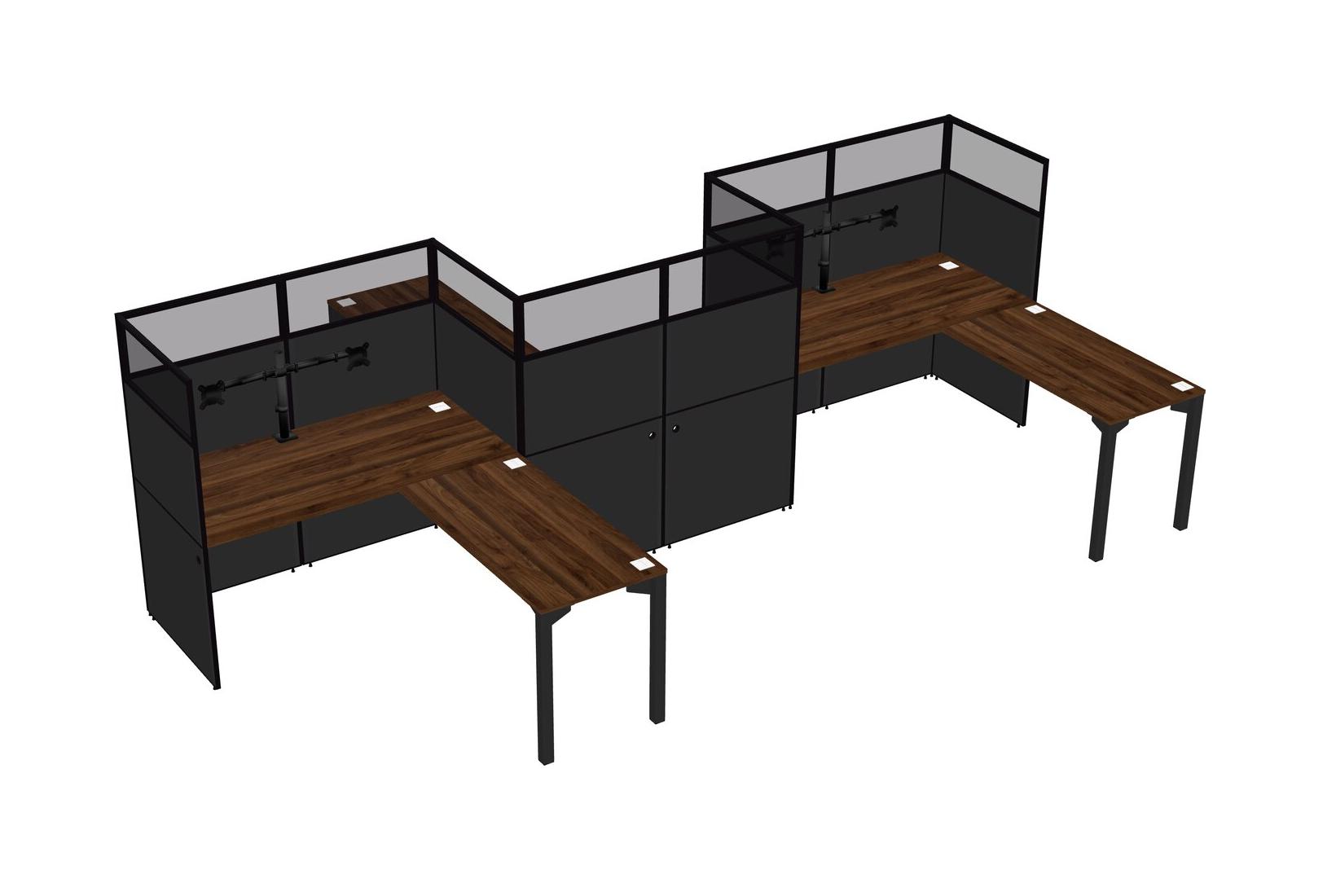 Postes De Travail En L En Noyer Columbia Pour 3 Personnes - Formation En Zigzag + Retour De Panneau