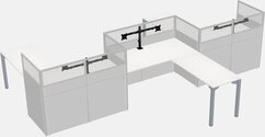 Postes De Travail Blancs En L Pour 3 Personnes - Formation En Zigzag + Retour De Panneau