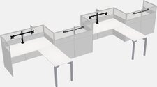 Postes De Travail Blancs En L Pour 4 Personnes - Formation En Zigzag + Retour De Panneau