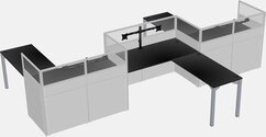 Postes De Travail En L Noirs Pour 3 Personnes - Formation En Zigzag + Retour De Panneau
