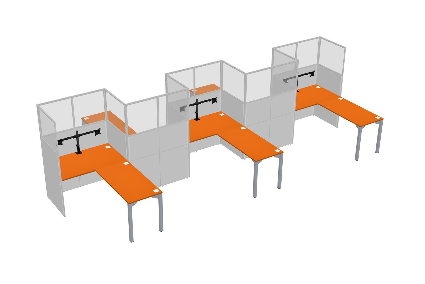 Postes De Travail En L Orange Pour 5 Personnes - Formation En Zigzag + Retour De Panneau