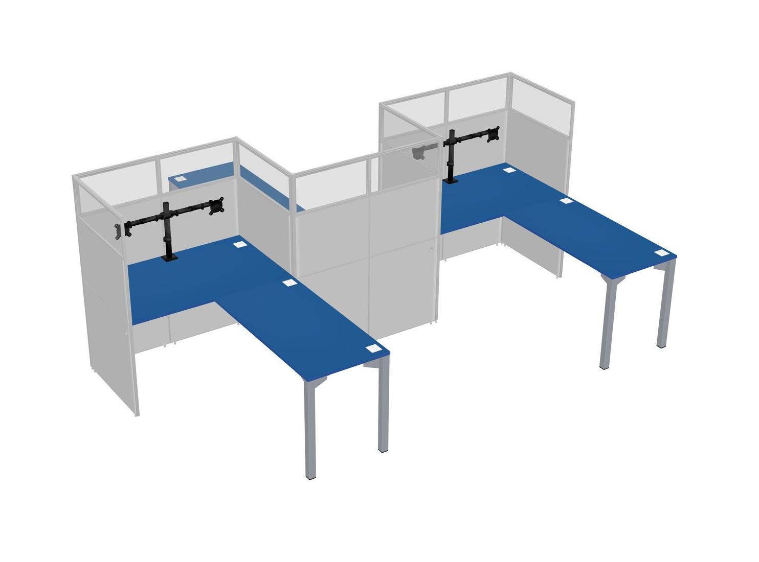 Postes De Travail En L Prism Blue Pour 3 Personnes - Formation En Zigzag + Retour De Panneau