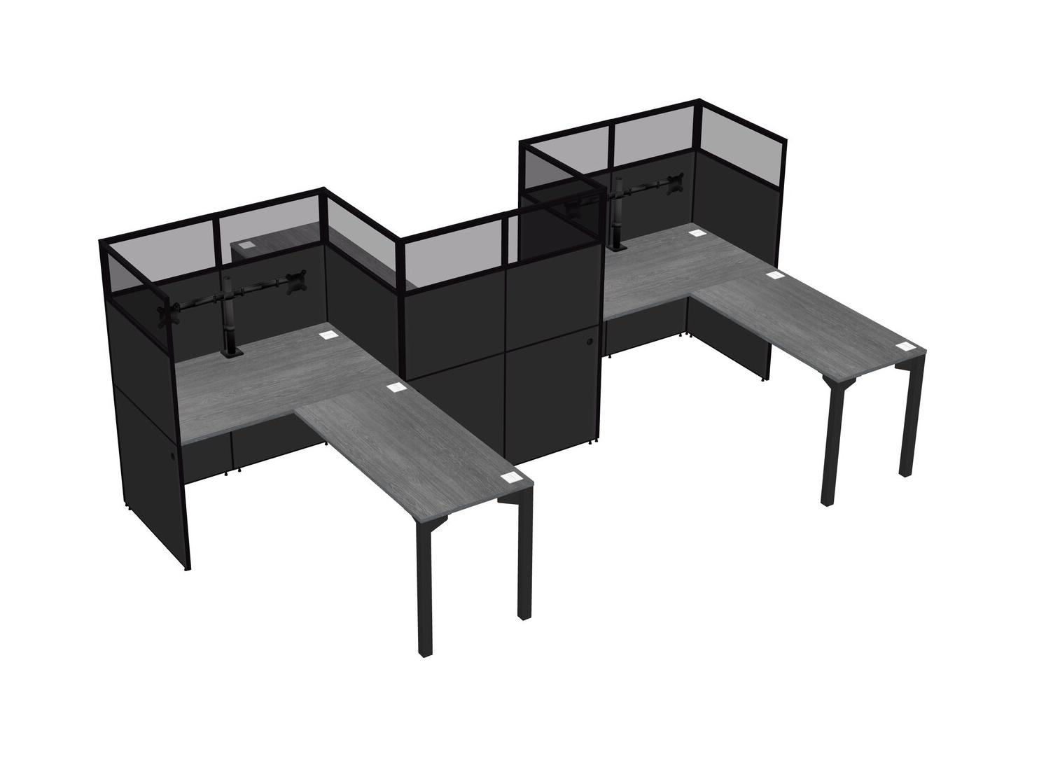 Postes De Travail En L Gris Pour 3 Personnes - Formation En Zigzag + Retour De Panneau