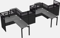 Postes De Travail En L Gris Pour 4 Personnes - Formation En Zigzag + Retour De Panneau