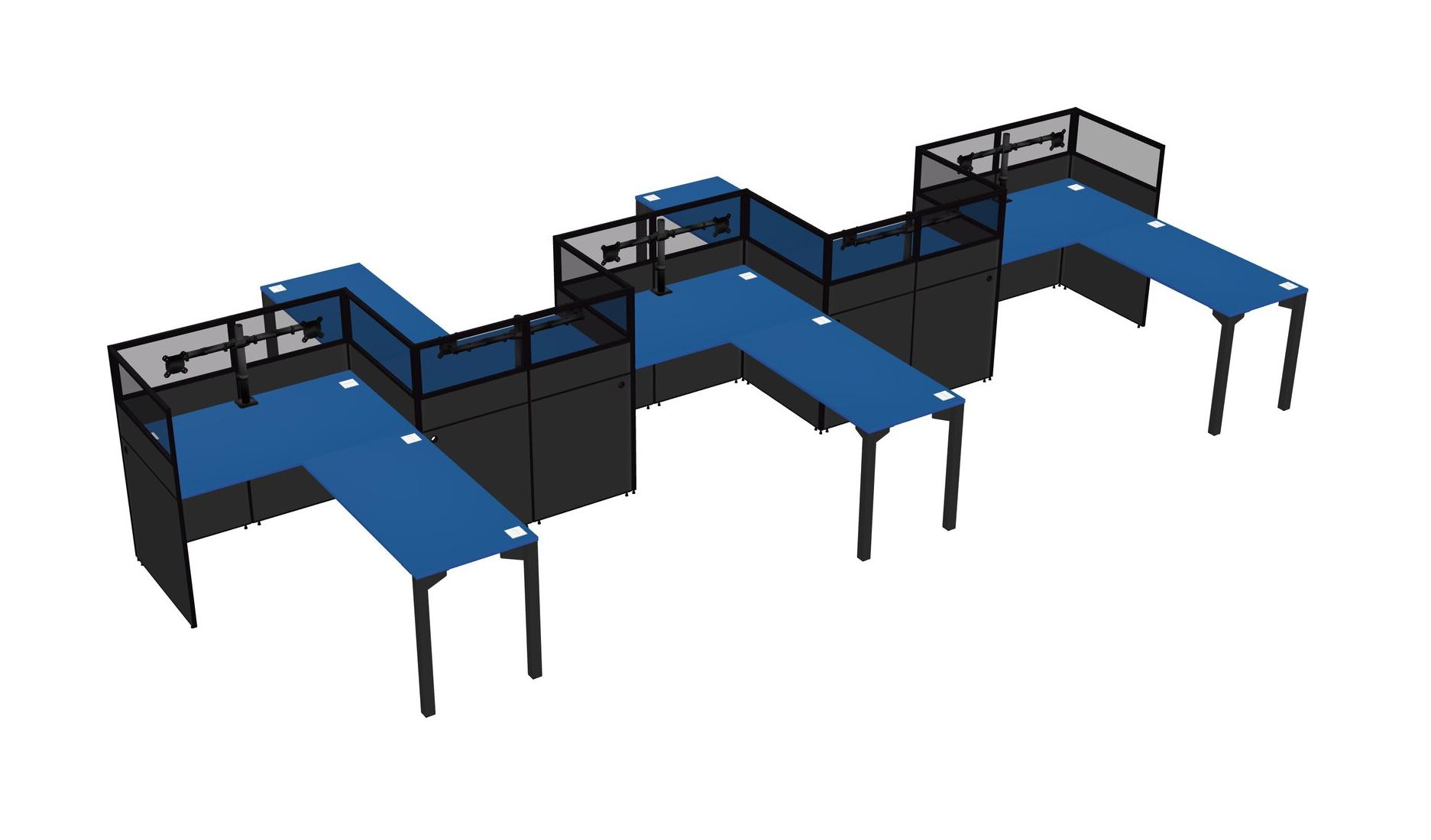 Postes De Travail En L Prism Blue Pour 5 Personnes - Formation En Zigzag + Retour De Panneau